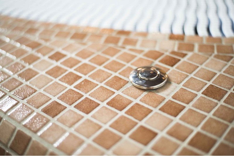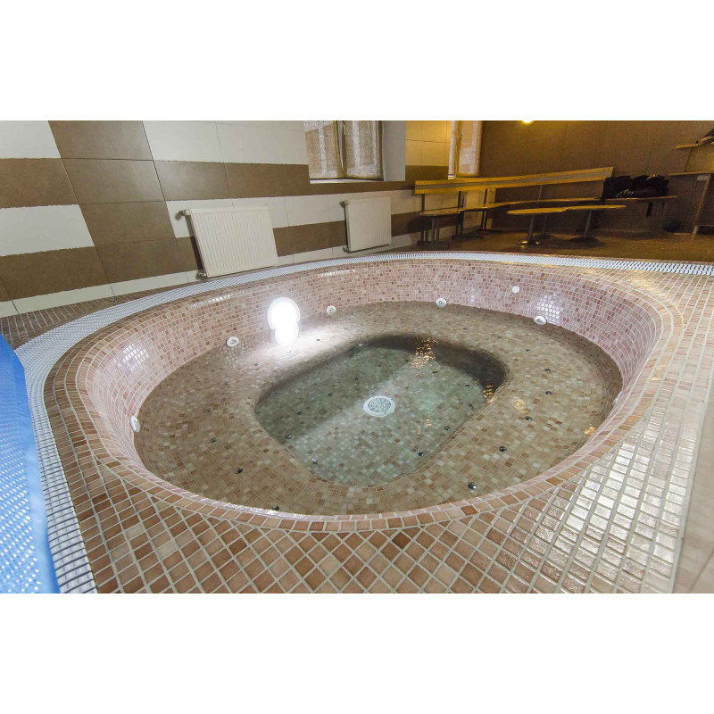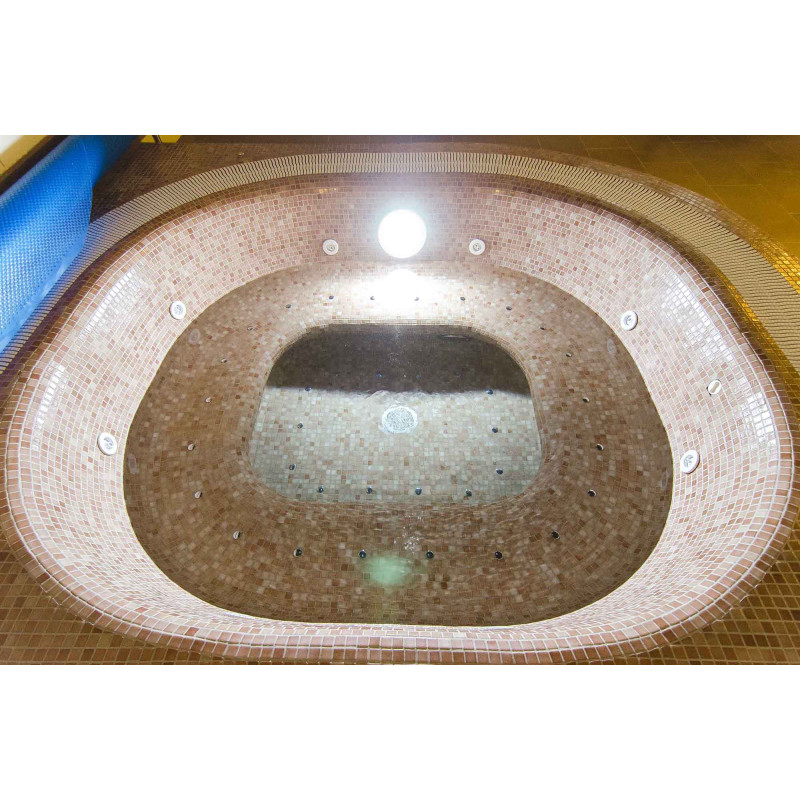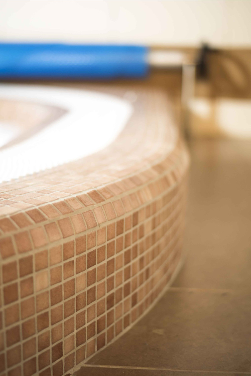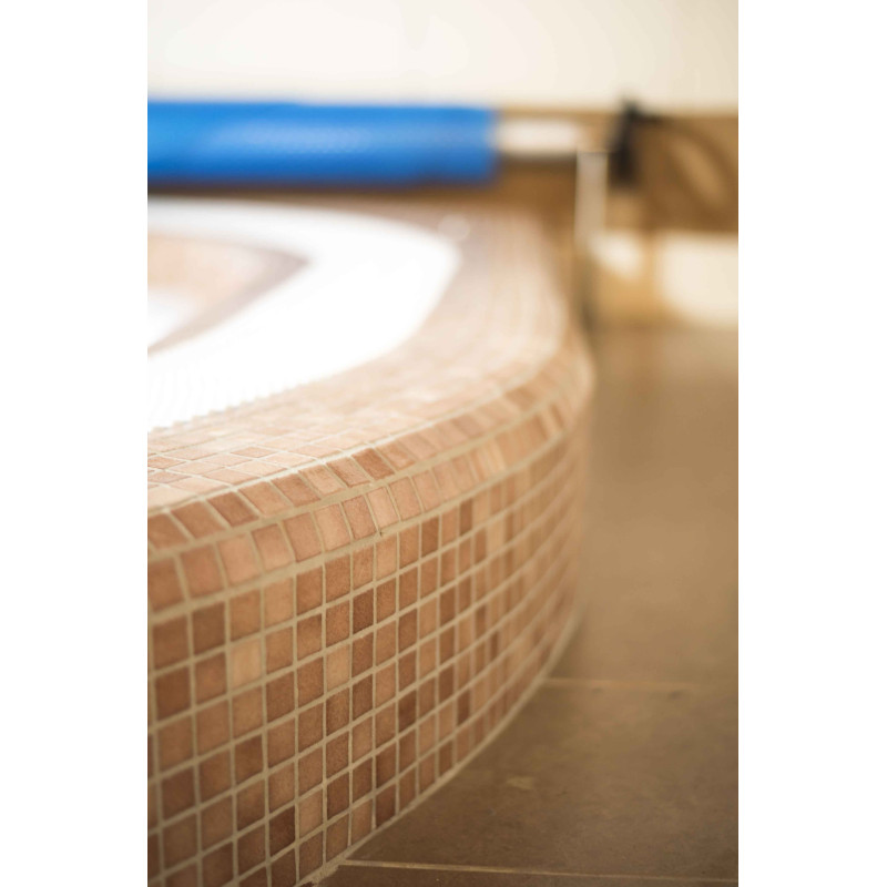 - Dlažba - vnitřní i vnější strana bazénu je pokryta neutrální barevnou drcenou skleněnou mozaikou.