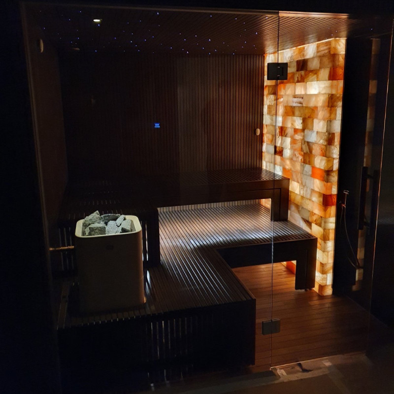 Himalájské solné cihly zvolené pro výzdobu sauny se zabudovaným osvětlením vytvářejí útulné prostředí a dále umocňují účinek sauny. Himalájské solné kameny jsou přírodním ionizátorem, který účinně zlepšuje kvalitu vzduchu vyzařováním záporných iontů. Záporně ionizovaný vzduch zlepšuje zdraví, pomáhá při léčbě mnoha nemocí jako jsou: průduškové astma, onemocnění plic a průdušek, postinfarkt, hypertenze, vředy trávicího traktu, záněty žaludku, onemocnění štítné žlázy, dermatitida, různé alergie, nervová onemocnění, pomáhá překonat mozkovou mrtvici. Výhody provádění procedur v takové sauně budou dvojí.