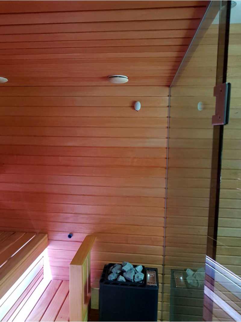 Sauna je vybavena reproduktory, abyste mohli při saunování poslouchat svou oblíbenou hudbu.
