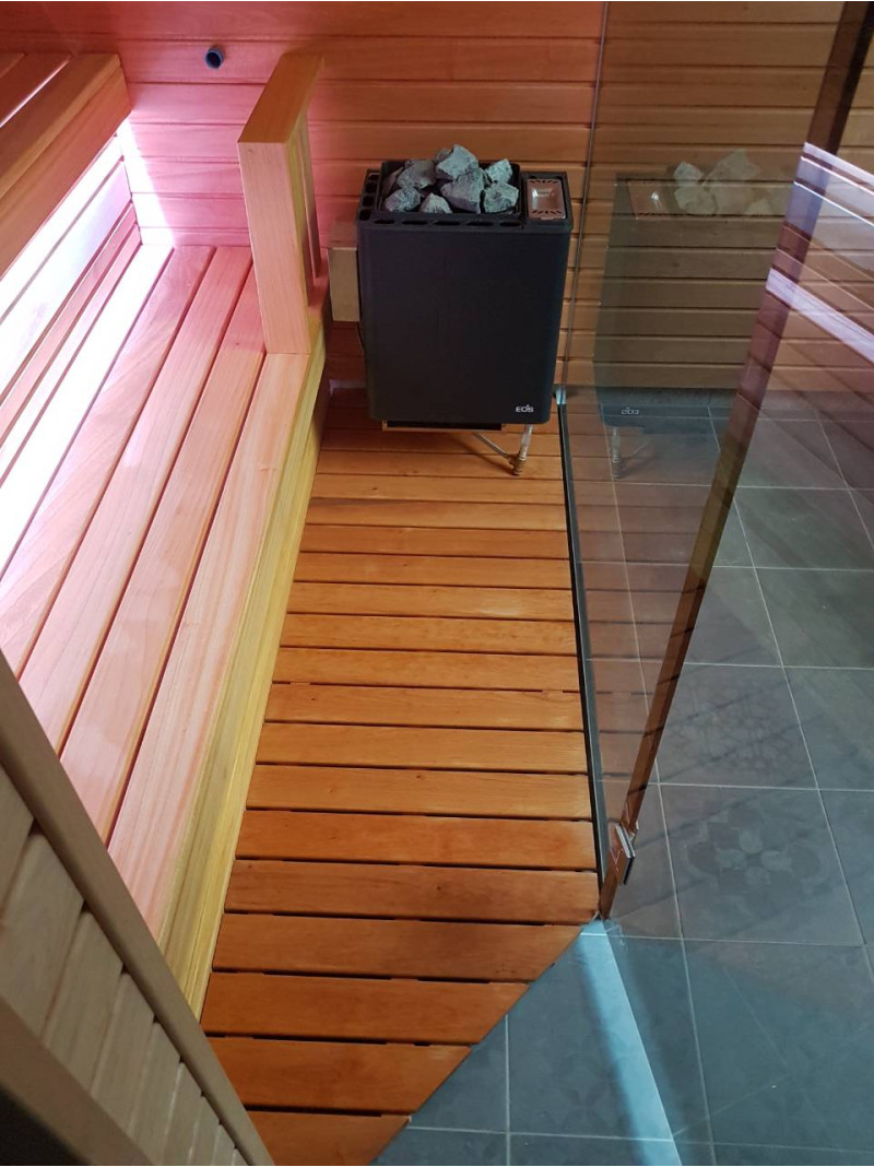 Tento projekt sauny kombinuje dva saunovací režimy – infra a parní saunu. Režim lze snadno nastavit pomocí ovládacího panelu postaveného mimo saunu.