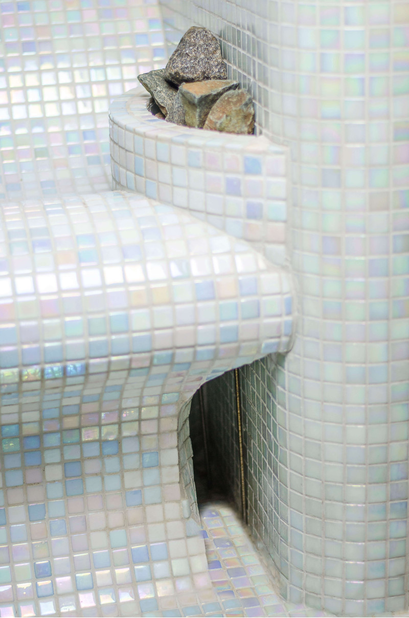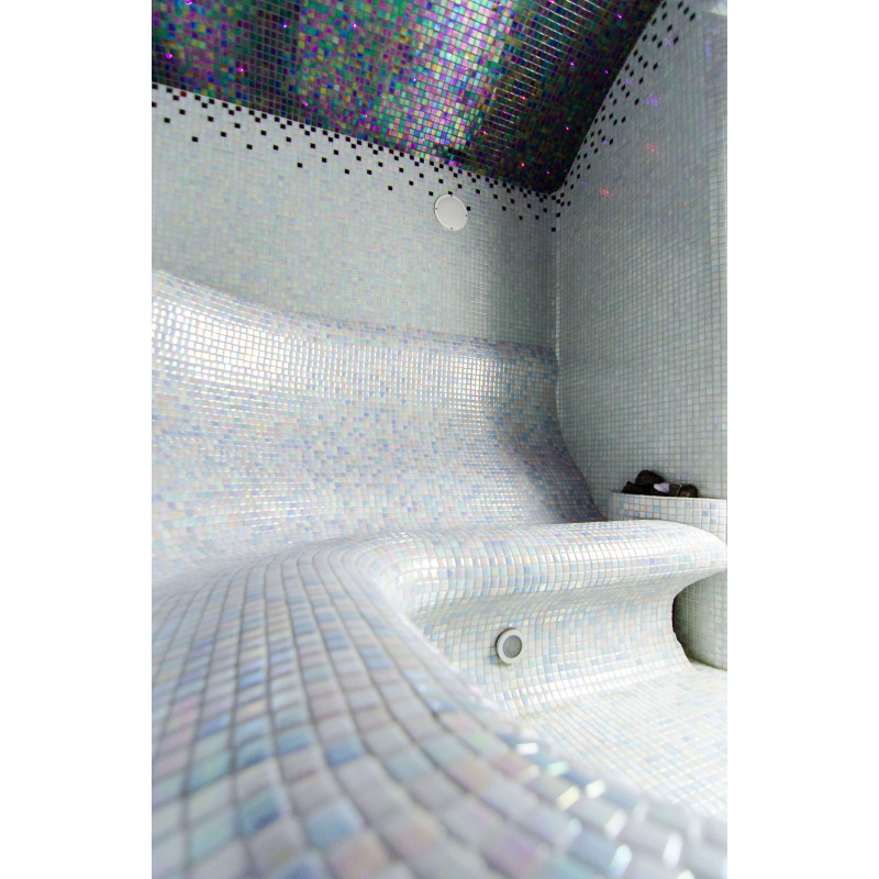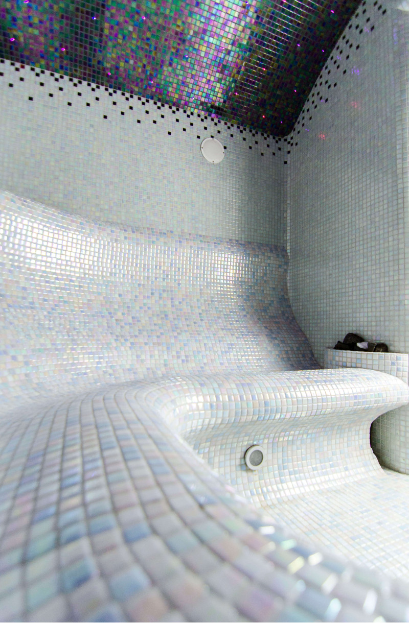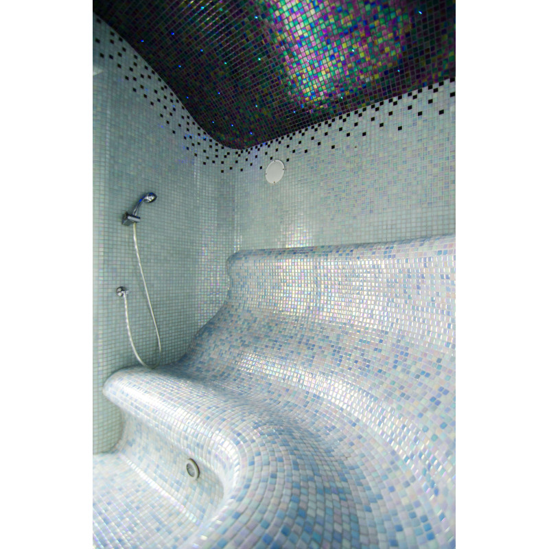 Lavičky, stěny a stropy parní sauny jsou vyráběny individuálně ze speciálního extrudovaného polystyrenu. Stropy mají obloukový tvar, typický pro každou parní místnost, aby se na nich nemohl hromadit kondenzát páry. Polohy v sedě, zakřivené pohodlně tvarované lavice pro příjemný odpočinek v sauně. Lavičky jsou odvodněné, aby se na nich nehromadil pot a vlhkost.