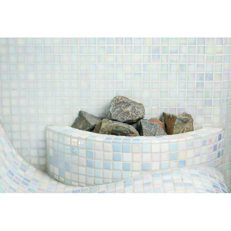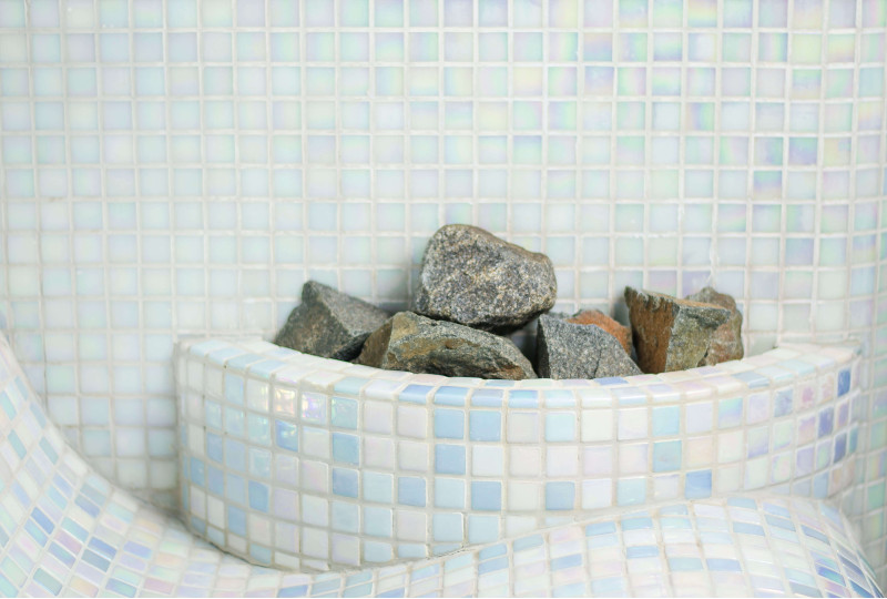 Sauna má také parní vázu, která funguje jako parní ochranná trubice, kterou pára vstupuje do sauny. Váza je zdobena olivínovými diabasovými kameny.