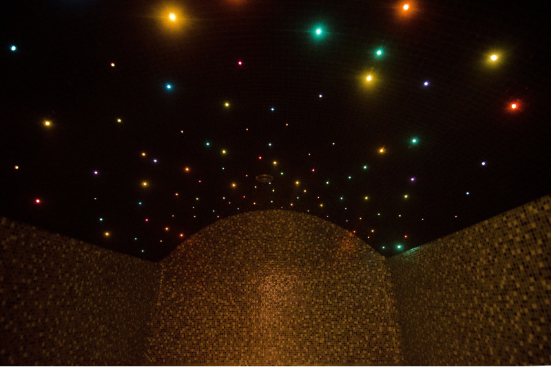 Osvětlení - působivý optický systém "hvězdné nebe". Vypadá obzvláště hezky s tmavým stropem. Barvu osvětlení lze změnit.