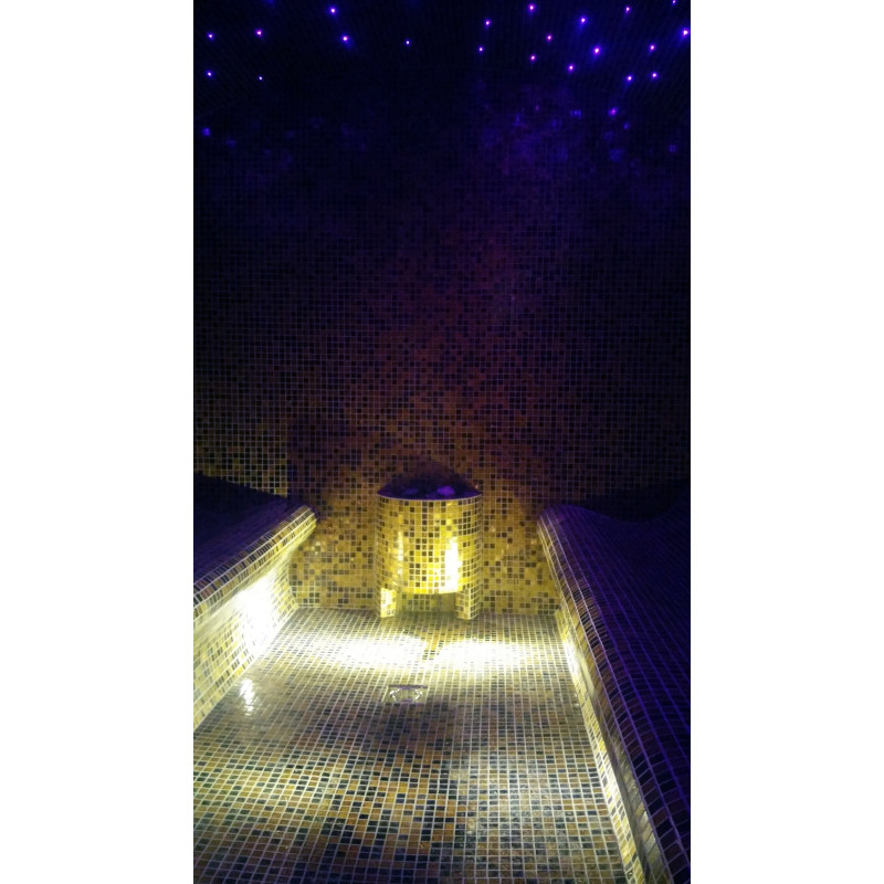 Optický systém osvětlení stropu - "hvězdné nebe". Osvětlení optickými vlákny je dlouhotrvající, všestranné, ekonomické a jednoduché řešení. Díky němu můžete vytěžit ty nejpůsobivější možnosti osvětlení. Pod lavice - osvětlení přizpůsobené do parní sauny pro osvětlení podlahy.