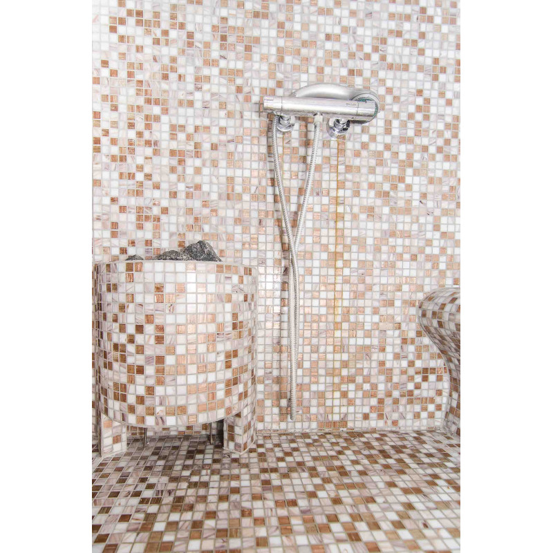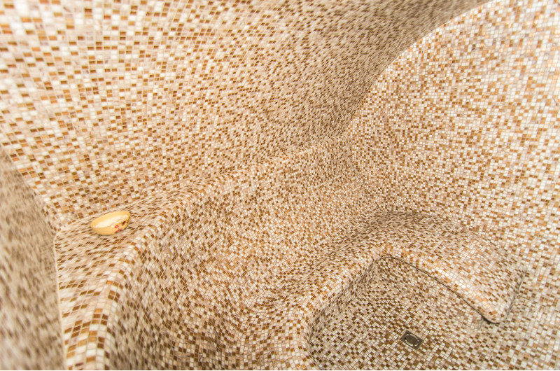 Povrchová úprava - mozaika z drceného skla v neutrální barvě.