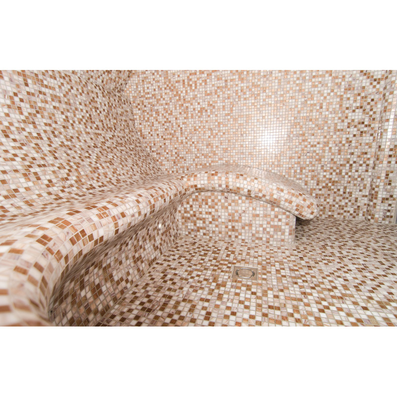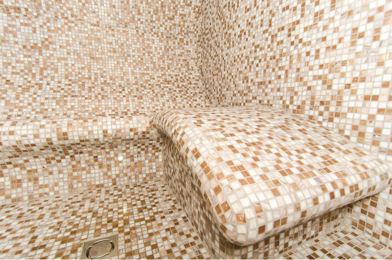 Lavičky, stěny a stropy parní sauny jsou vyráběny individuálně ze speciálního extrudovaného polystyrenu. Strop má obloukový tvar typický pro všechny parní sauny.
