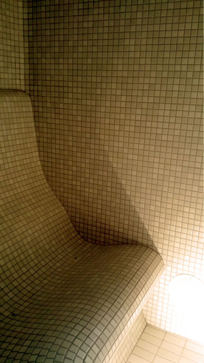 Dokončení - stropy sauny, stěny a solária jsou zdobeny drcenou skleněnou mozaikou. Na podlaze je dlažba s dlouhou životností.
