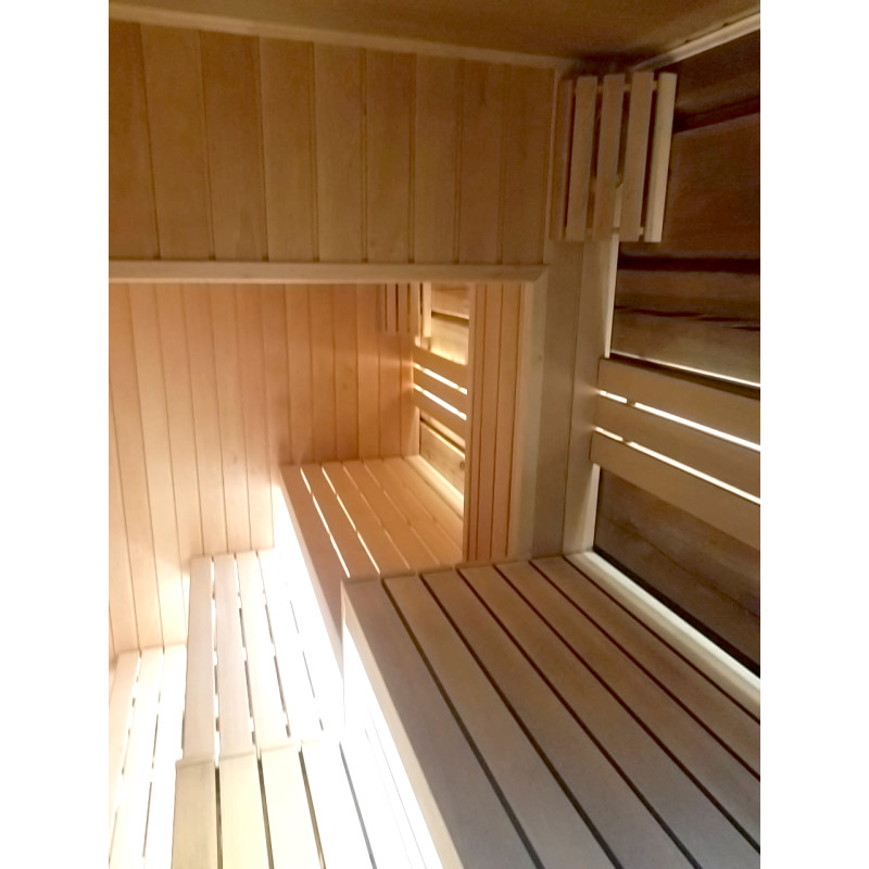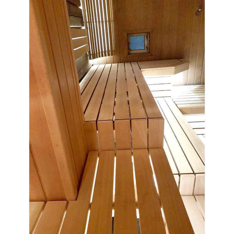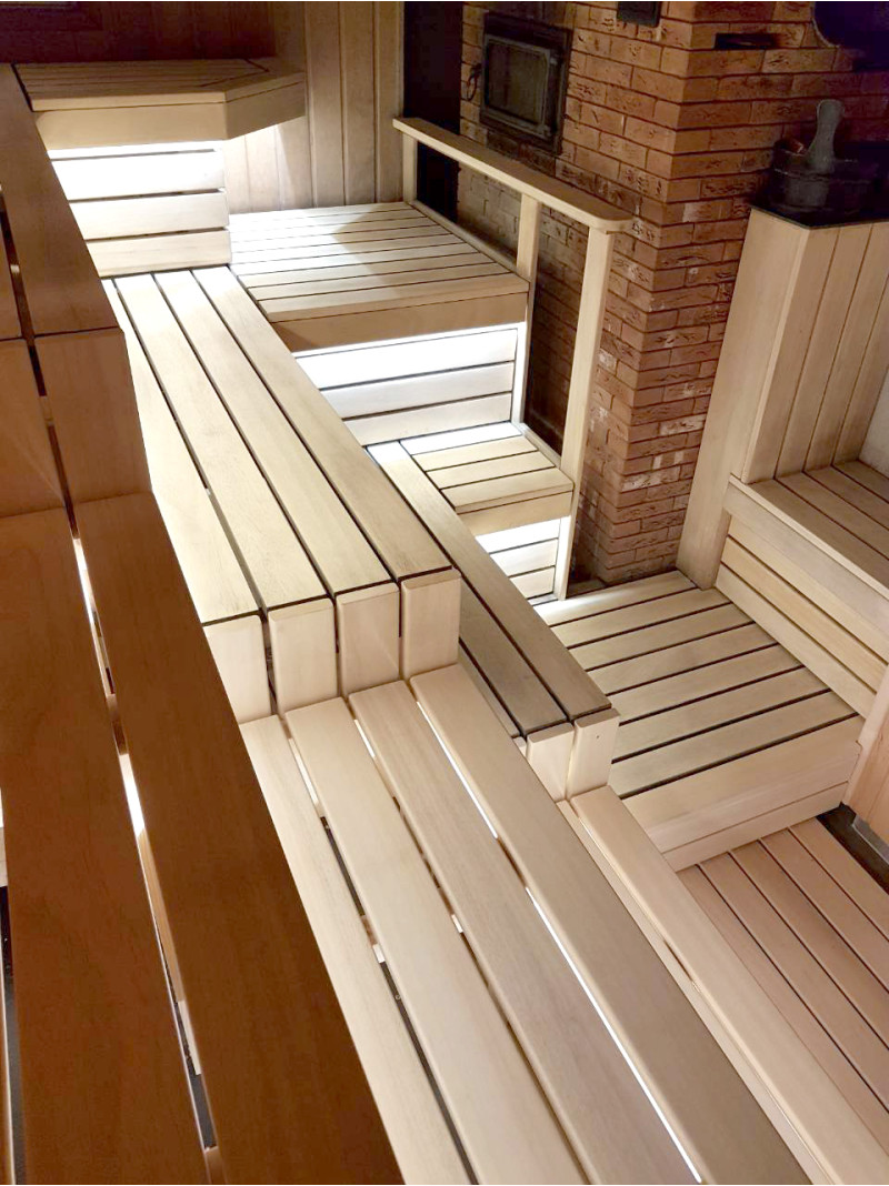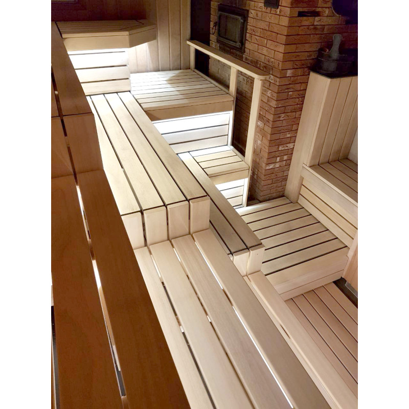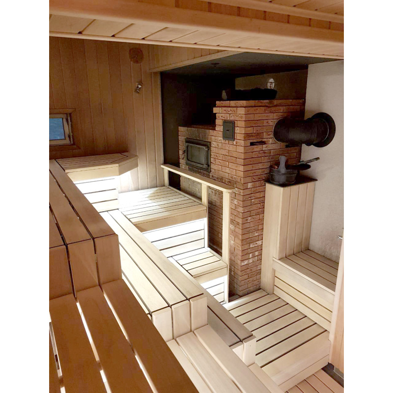 Dřevo je impregnováno, chráněno před vysokým žárem a připraveno k dlouhodobému používání. Lavice a opěradla jsou mazána speciálním olejem na saunové dřevo.