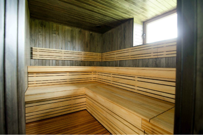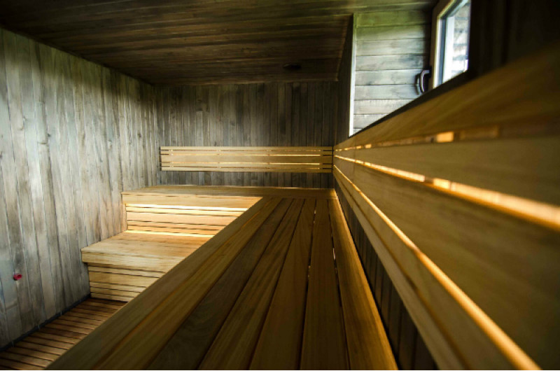 Dřevo sauny je navoskované, naolejované, připravené k dlouhodobému užívání sauny.