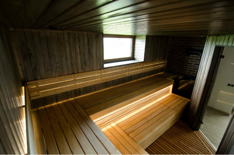 Okno v sauně dodává místnosti více světla a větší pocit prostoru.