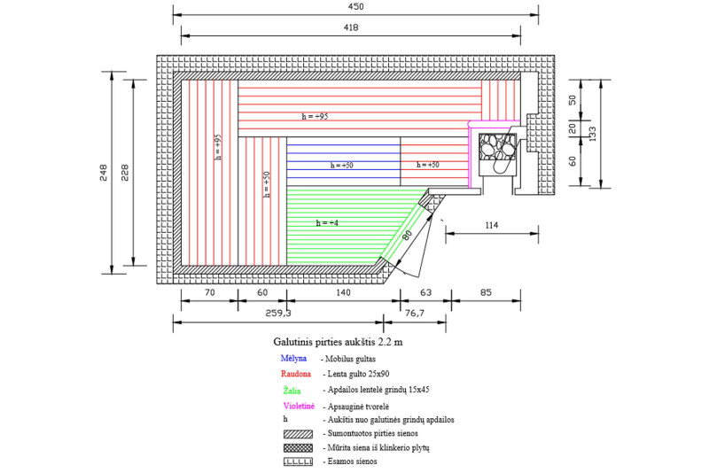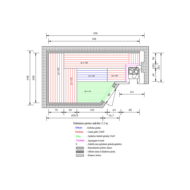 Stropní a stěnové obklady - nejvyšší druh AB lipového dřeva. Lipový obklad má nízkou tepelnou kapacitu, což přispívá k rychlému prohřátí sauny. Také lipové dřevo obsahuje velké množství silic, dřevo v sauně vyzařuje příjemnou přírodní vůni.