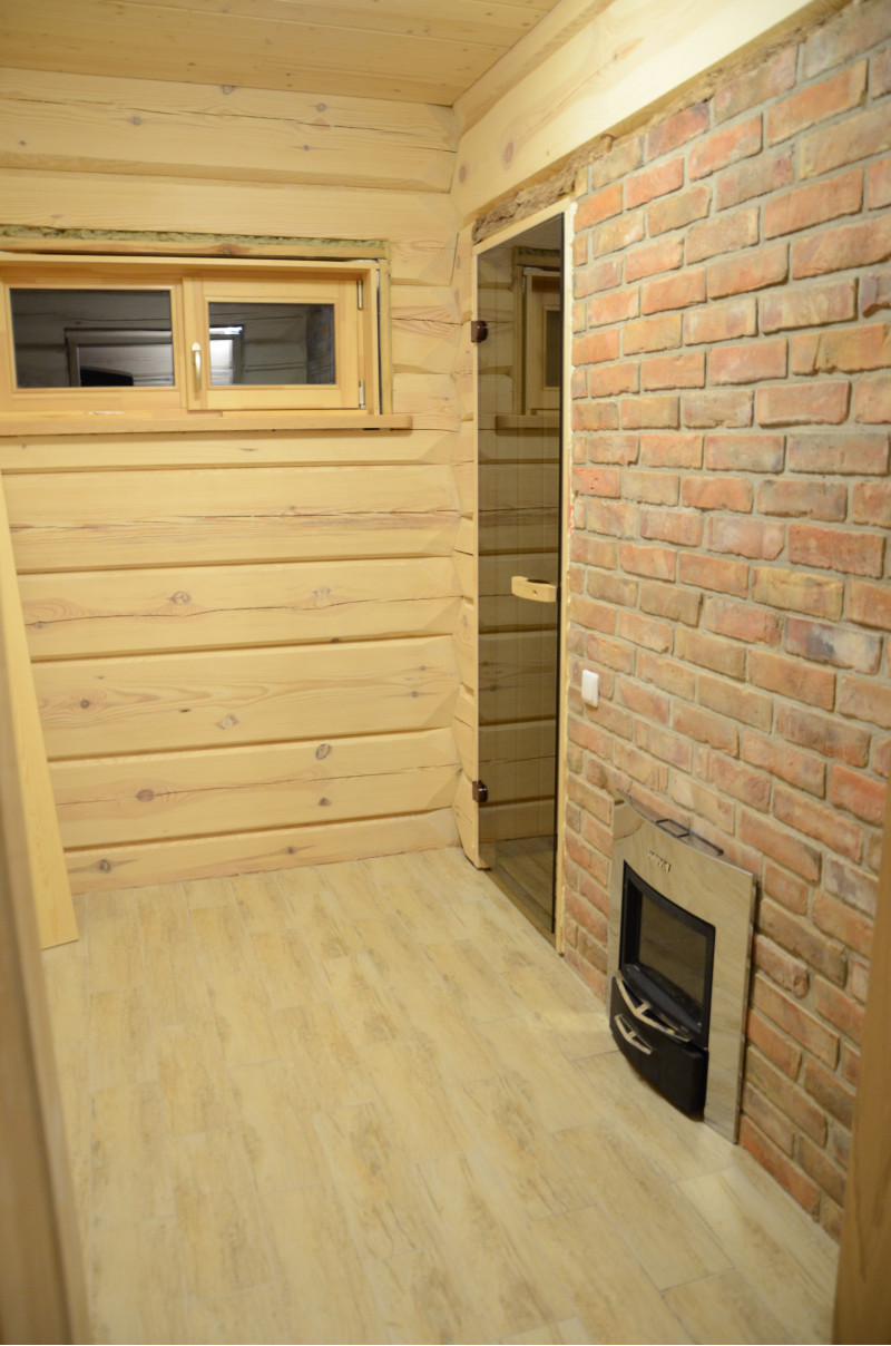 Stěny jsou zdobeny vápnem a pálenou osikou s nejkvalitnějším dřevěným obkladem.