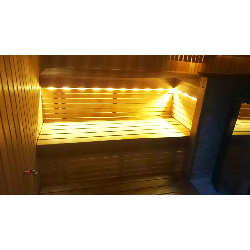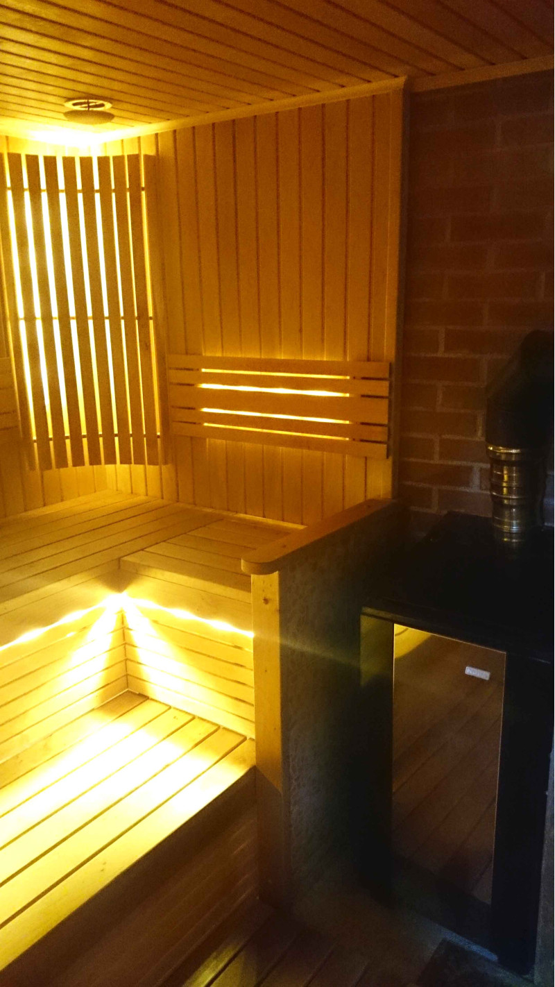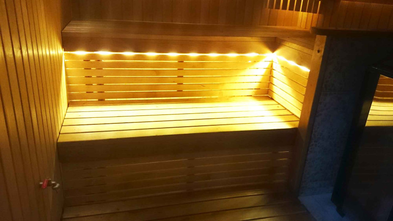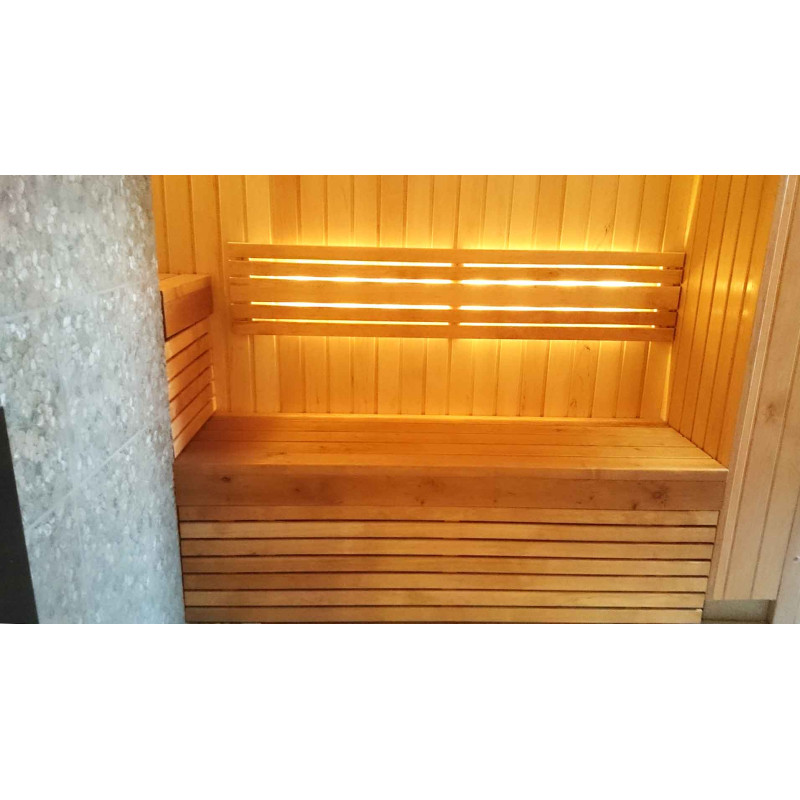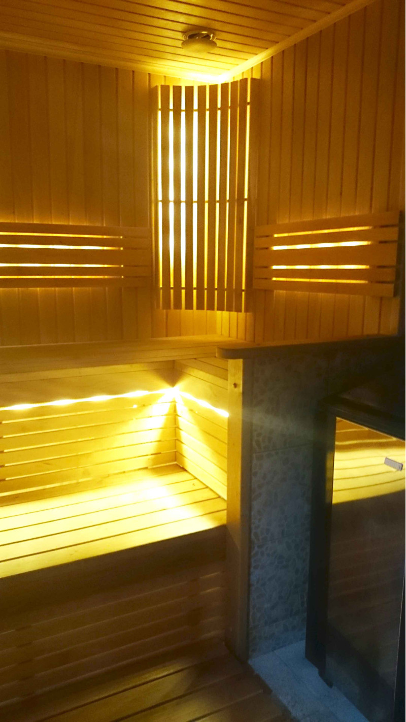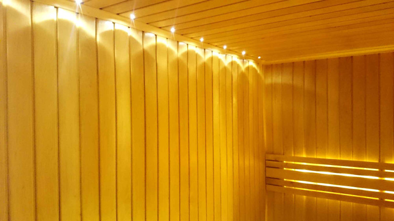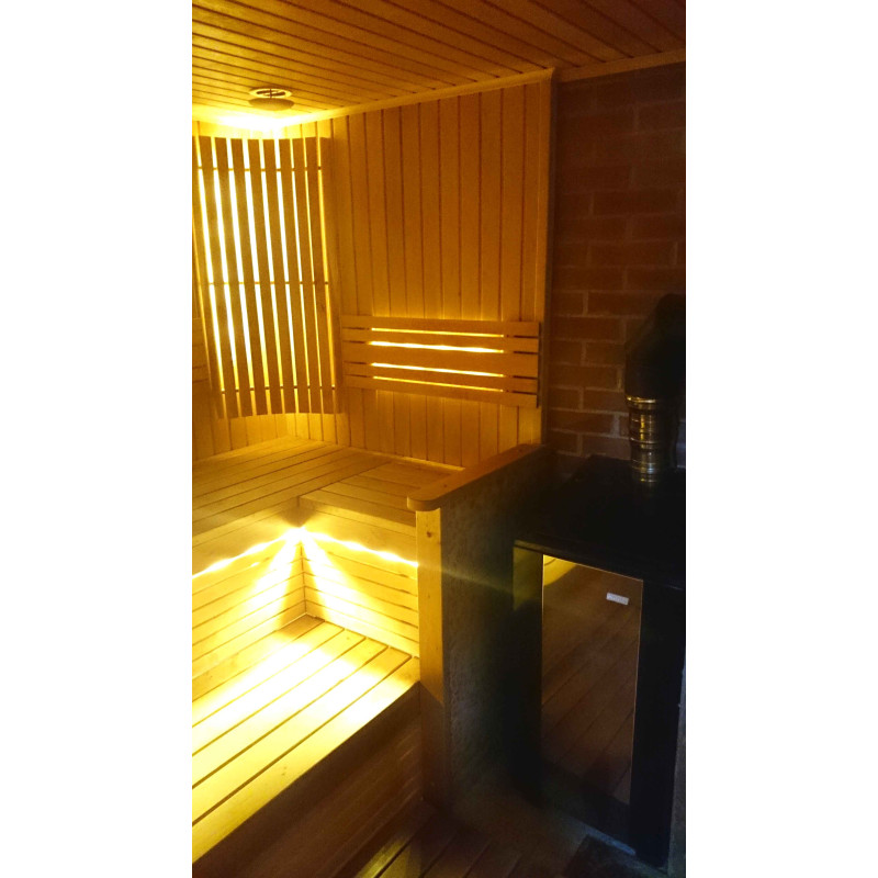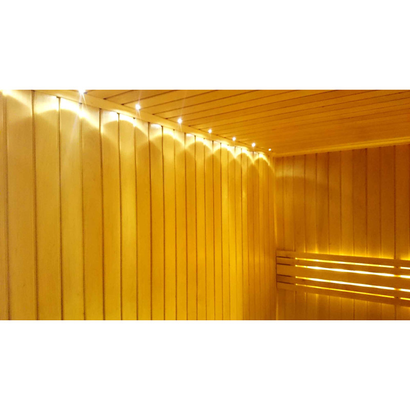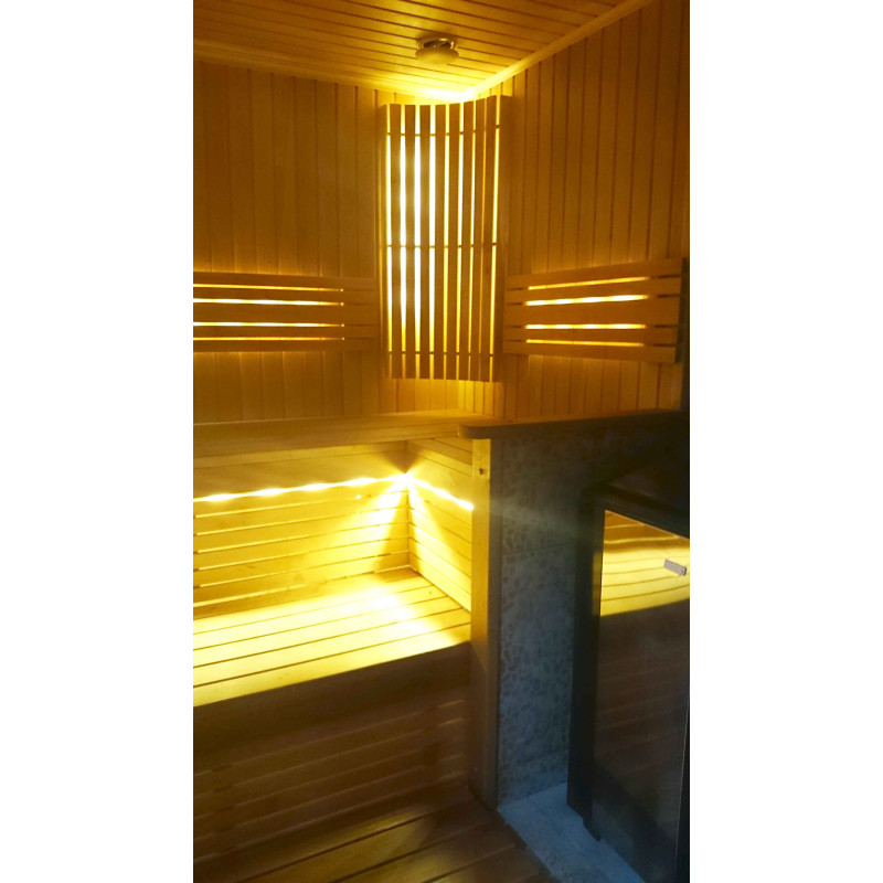 Osvětlení sauny je velmi důležitým prvkem, protože právě osvětlení zajišťuje část relaxačního efektu sauny. Tato sauna je vybavena LED světly na stropě, pod lehátky a opěradly. Svítidla jsou odolná vůči vlhkosti a vysokým teplotám.