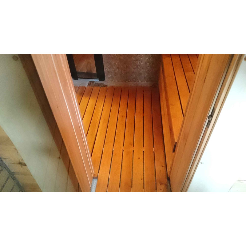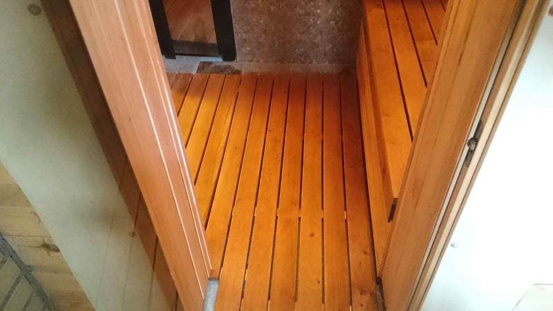 Vnitřní dekorace - kvalitní obklad z černé olše. Obklad z černé olše dokonale snáší velké teplotní rozdíly, nepraská a nedeformuje se. Vyhřívané vydává nádhernou a lehkou vůni přírodního dřeva, která poskytuje komfort pro saunové procedury. Olše černá se v rozpálené sauně nezahřeje, takže se při kontaktu s povrchem nelze spálit.