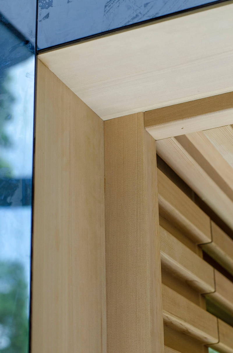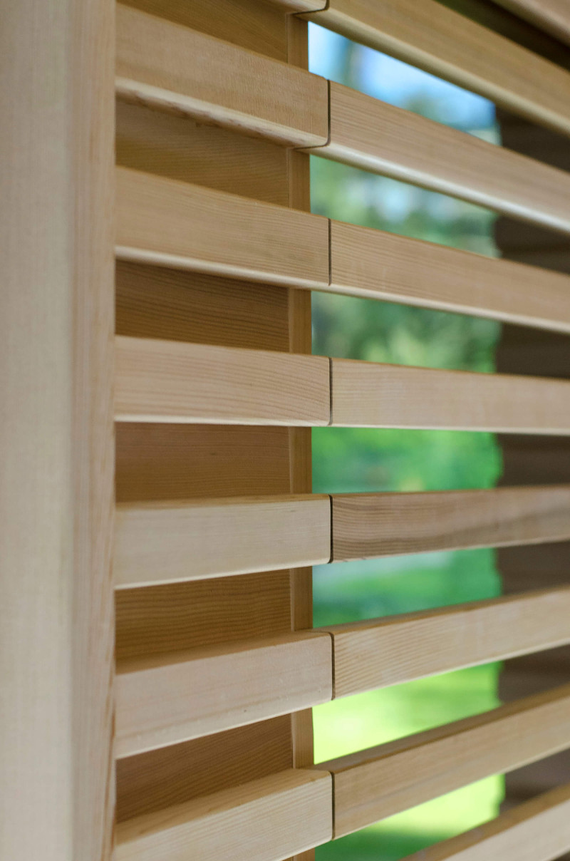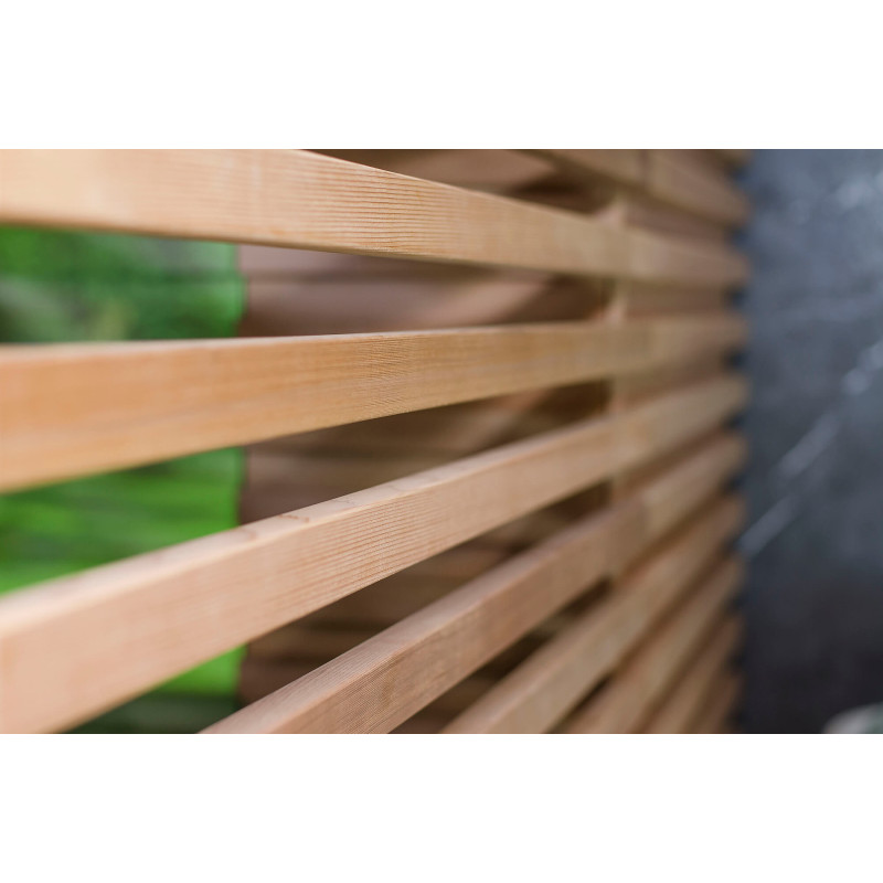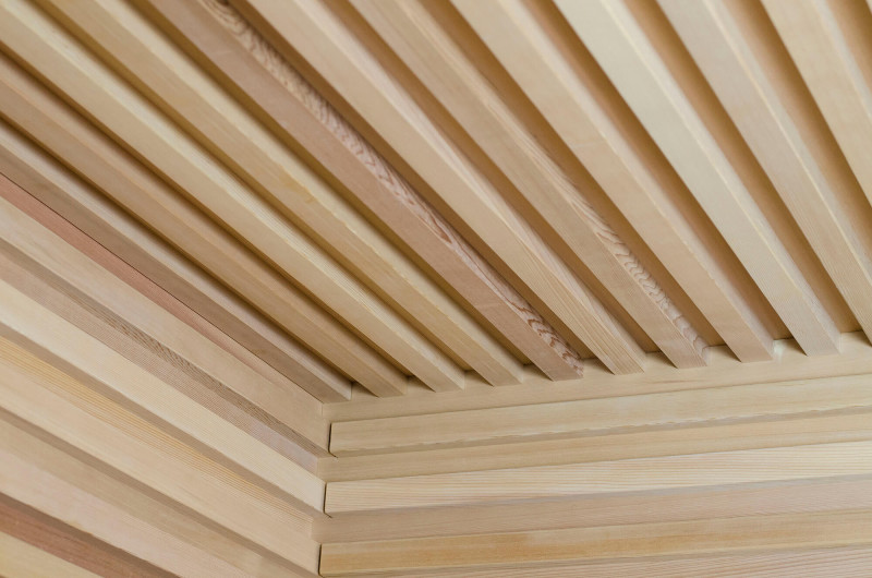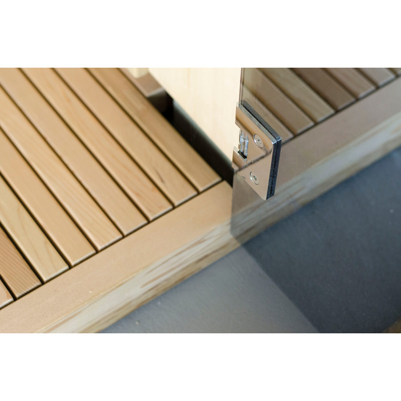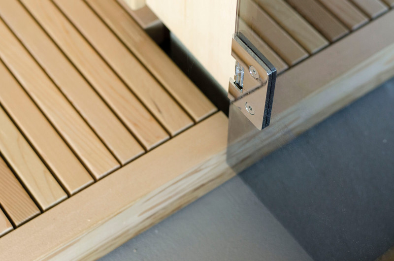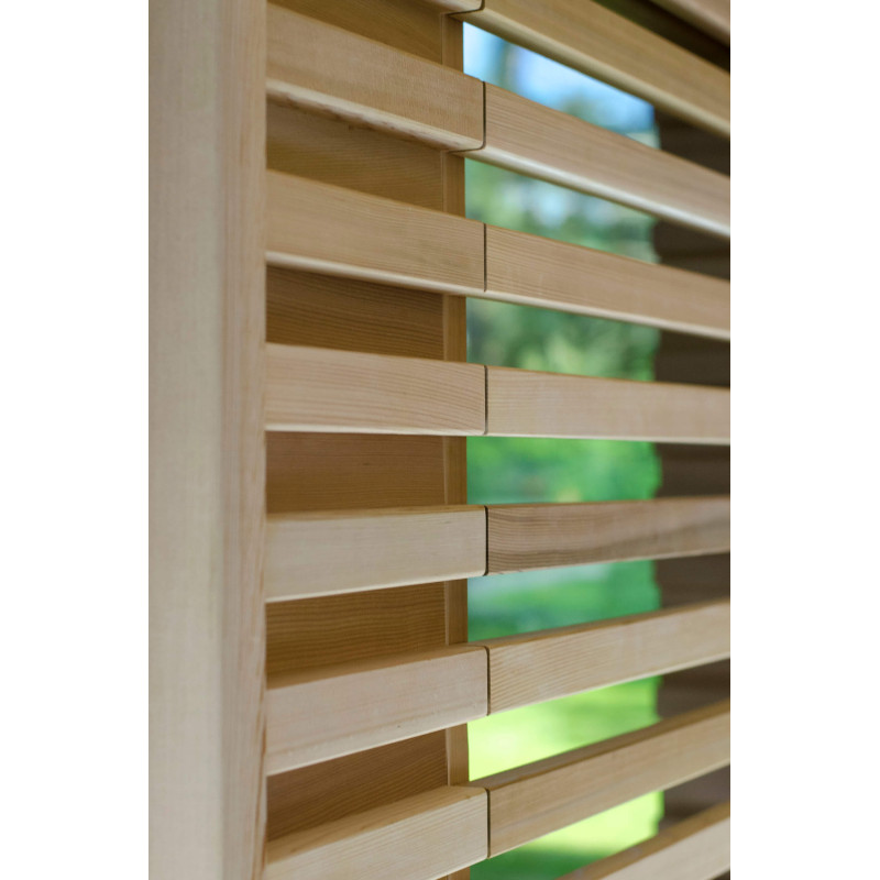 Stěny a lavice sauny jsou vyrobeny z nejkvalitnějšího cedrového dřeva, vyrobeného podle individuálního profilu. Opěradla-polštáře - ručně vyráběné cedrové dřevo. Toto dřevo je vysoce kvalitní, nezahřívá se, takže je bezpečné a příjemné na dotek při saunování.