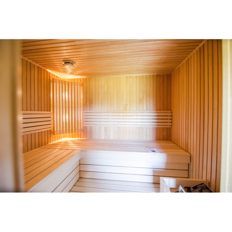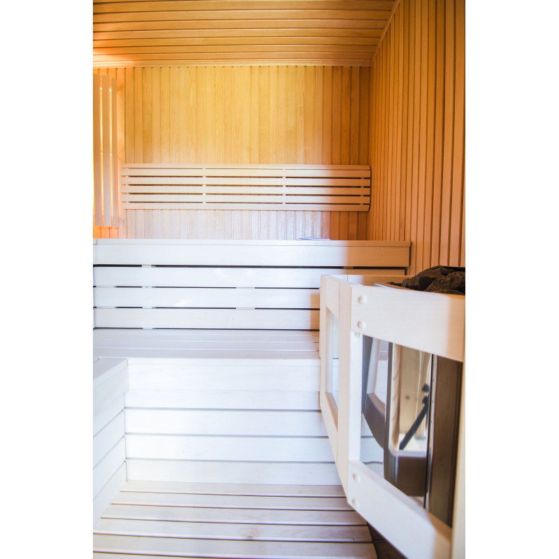 Osvětlení - dvě lampy Harvia instalované pod opěradlem.