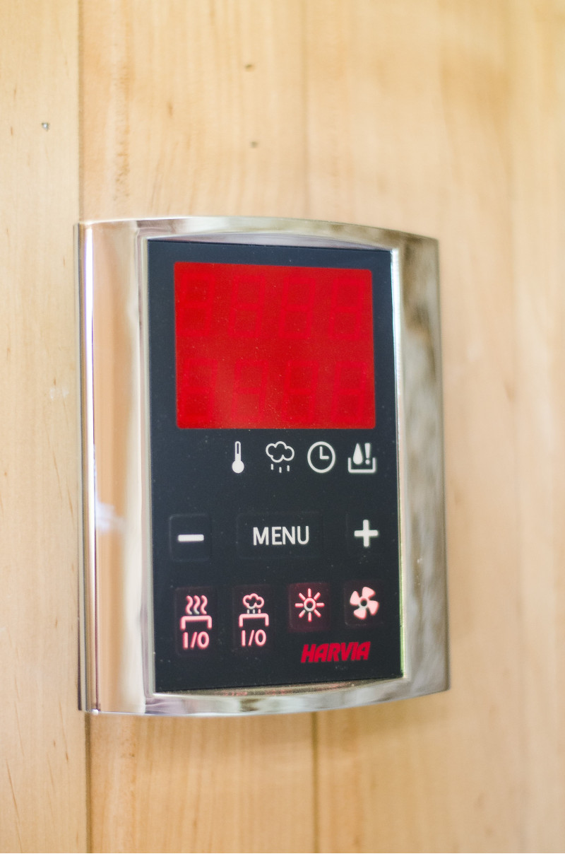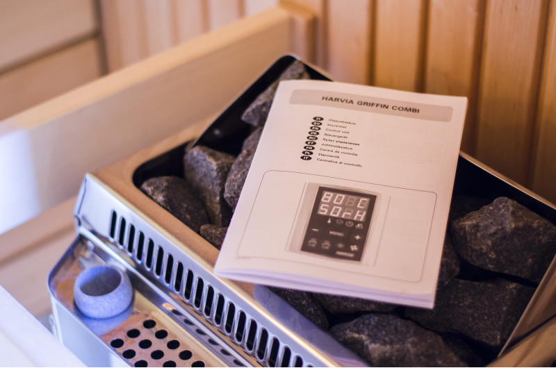 Ohřívač má samostatnou řídící jednotku Harvia Griffin Combi CG170C pro ovládání ohřívače Combi a také ohřívače s výparníkem. Ovládací panel je instalován mimo saunu.