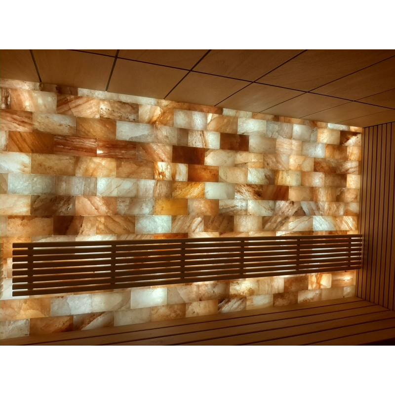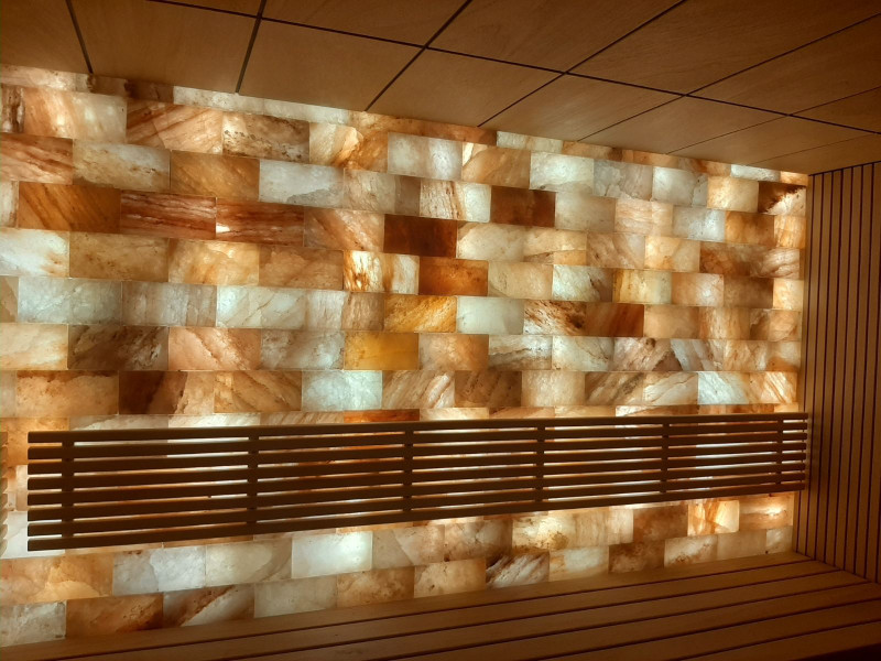 - Himalájská solná sauna - Himalájská sůl je jednou z nejuznávanějších solí na světě. Himalájská sůl zlepšuje kvalitu vzduchu v interiéru, snižuje příznaky alergie a astmatu, zlepšuje náladu a dodává energii. Himalájská sůl je vybírána nejen kvůli pozitivním vlastnostem pro zdraví. Osvětlení pod himalájskými solnými cihlami vytvořilo obzvláště útulné a působivé prostředí.
