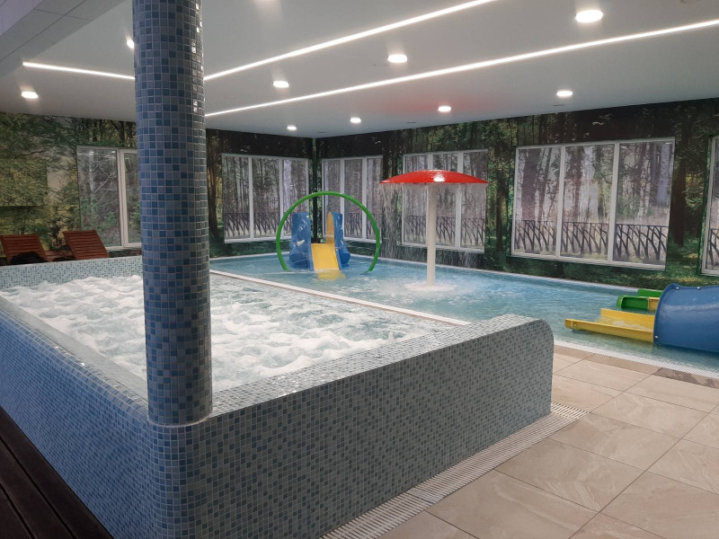 - Bazén (6m dlouhý) s kaskádami, podvodní gejzíry.