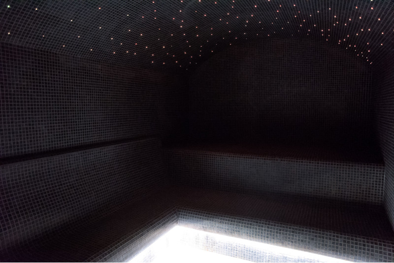 Pod lavicemi - LED osvětlení odolné proti vlhkosti a teplotě, osvětlující podlahu. Pro osvětlení klenutého stropu byl zvolen systém osvětlení z optických vláken „Starry Sky“, jehož barvy lze snadno a rychle měnit pomocí ovládacího panelu.