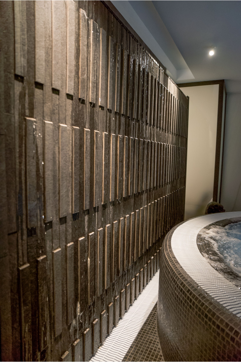 Bazén je ohraničen stěnou s tekoucí vodou. Jsou instalovány systémy jímání vody, úniky, filtrace. Padající a kapající voda vytváří v lázních tropický exotický styl. Atmosféra vytvořená východem vám umožní zažít exkluzivní odpočinek.