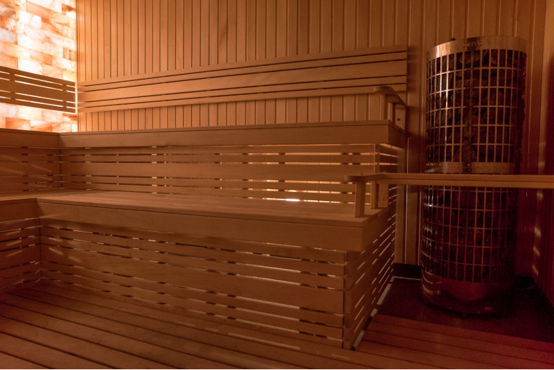 K osvětlení sauny byly použity 4 lampy odolné vlhkosti a teplotě a LED osvětlení za himalájskou solnou stěnou.