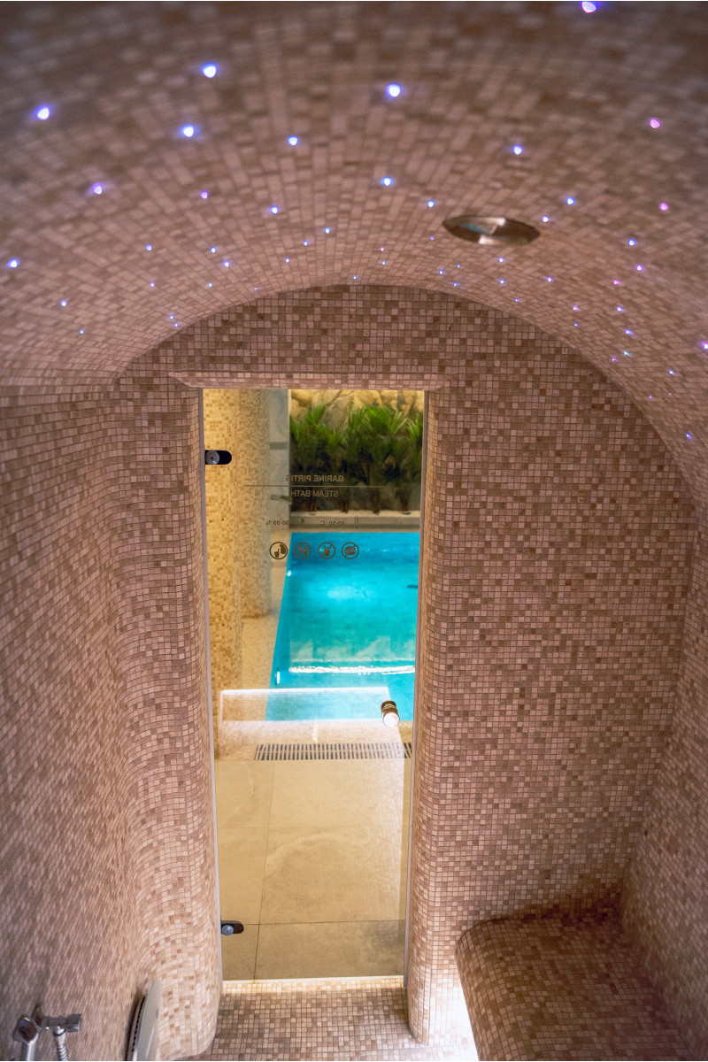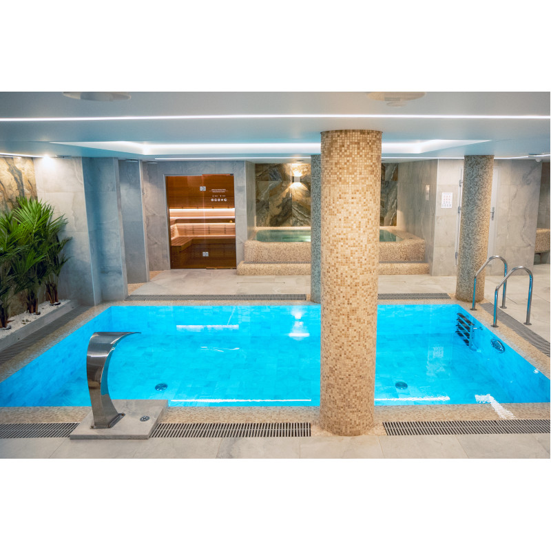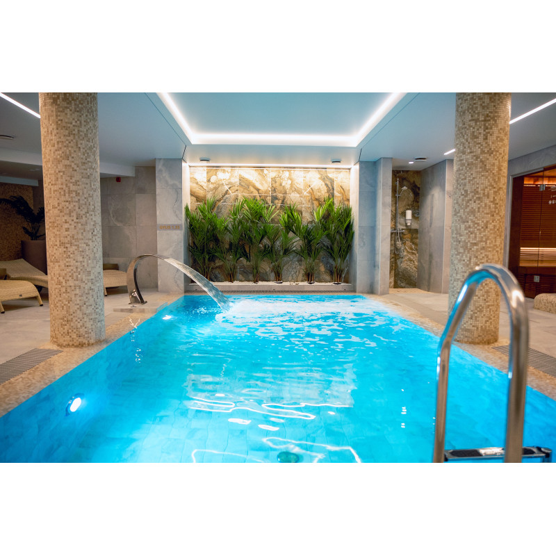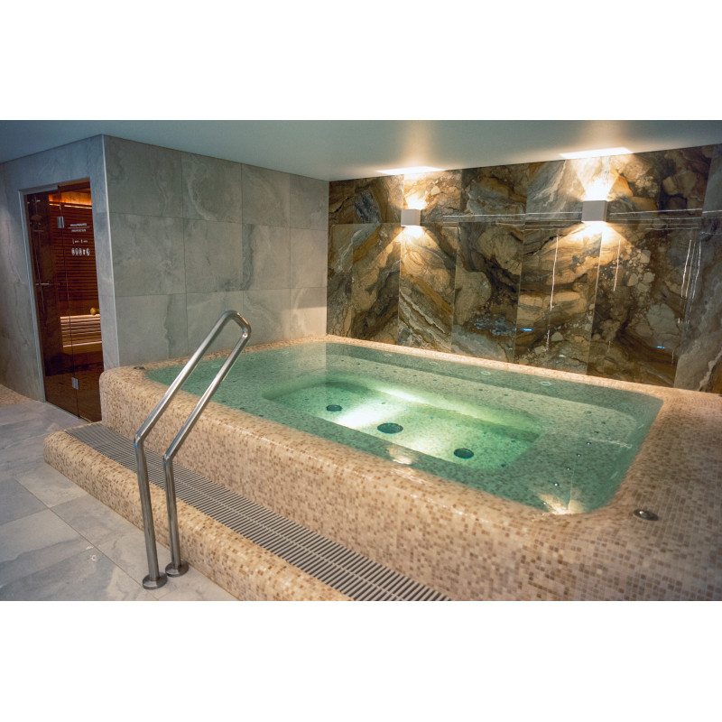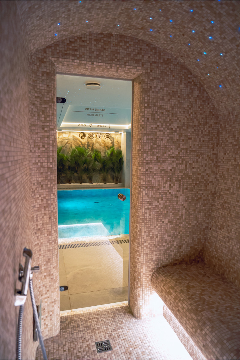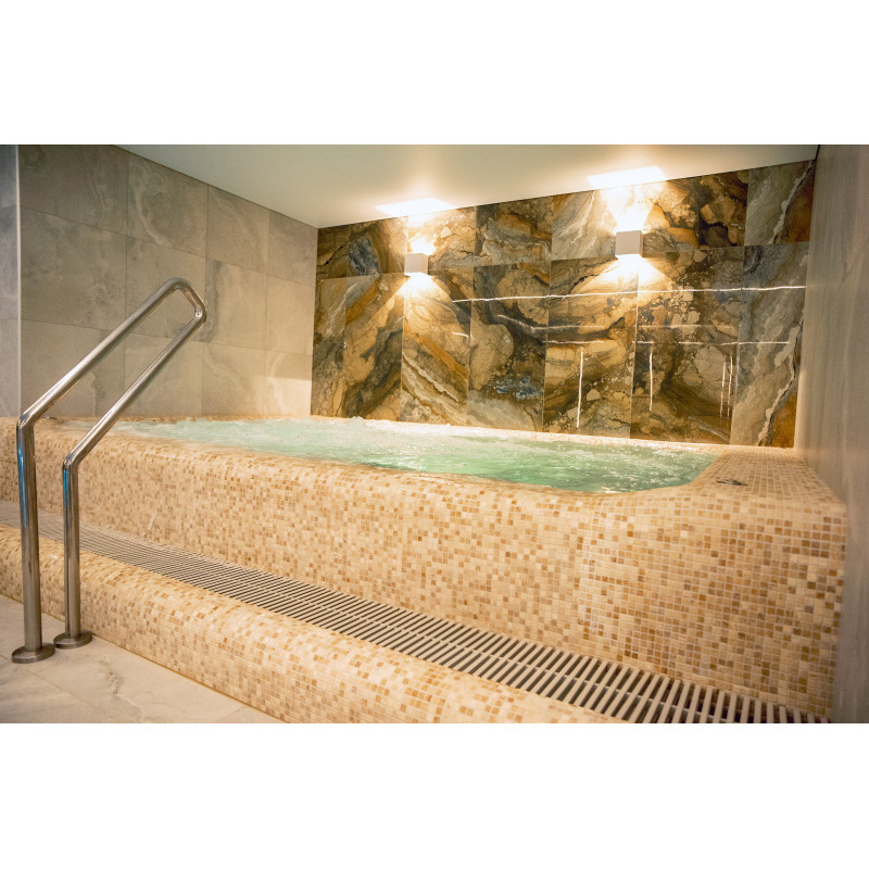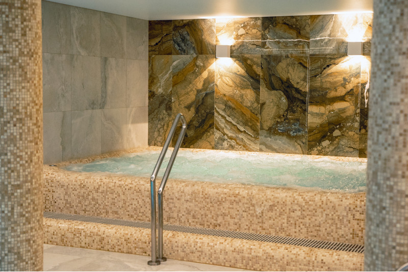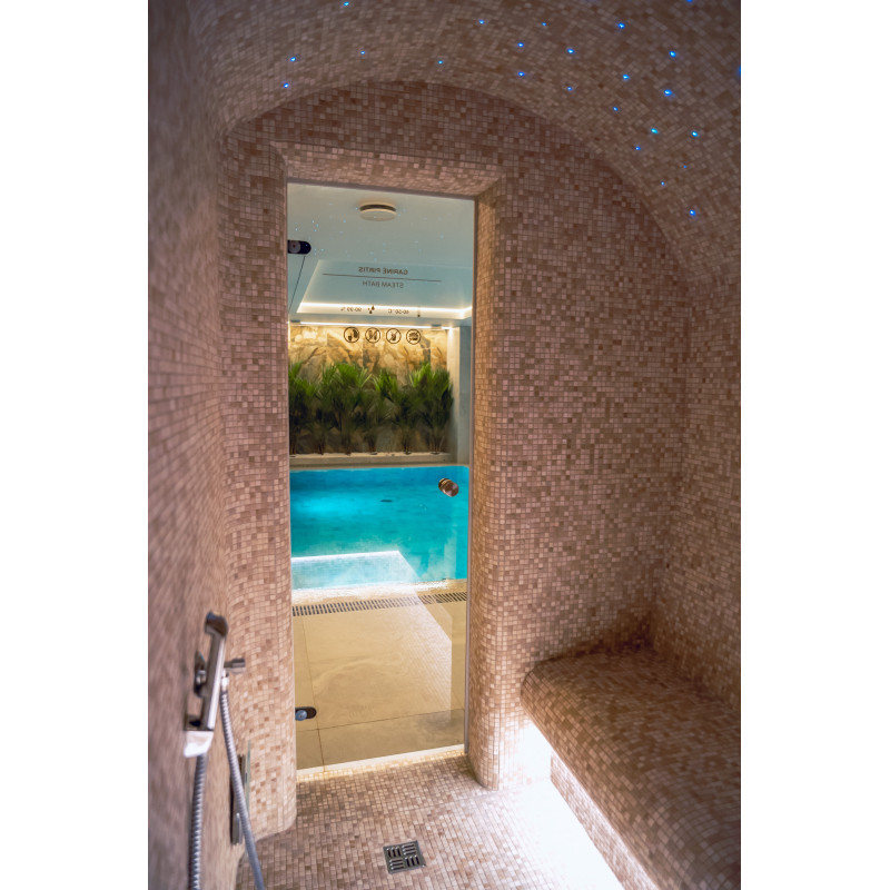 Součástí komplexu je parní lázeň, sauna, generátor ledu a bazén s masážní tryskou a vířivkou.