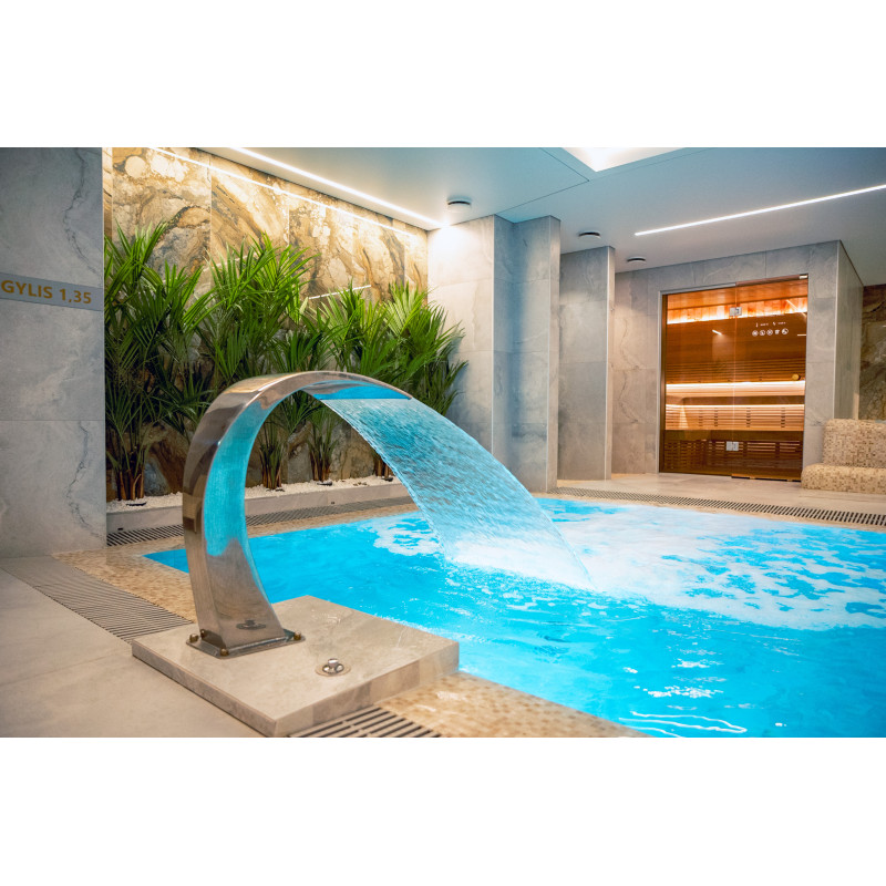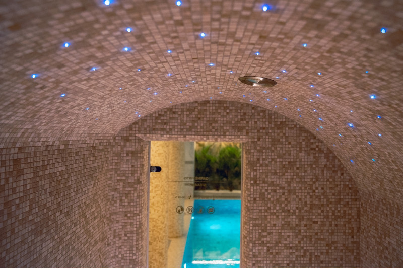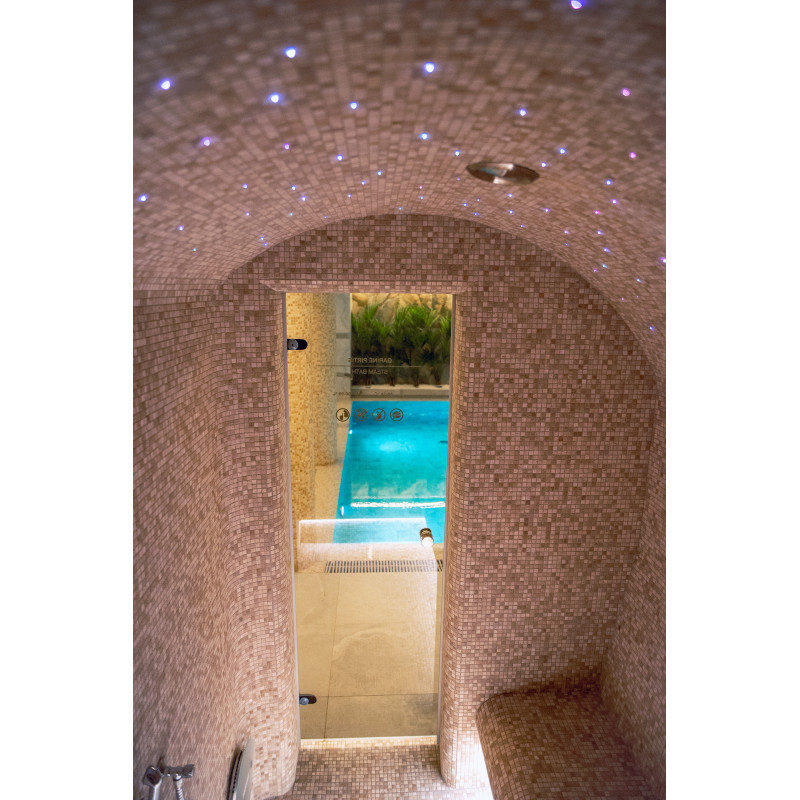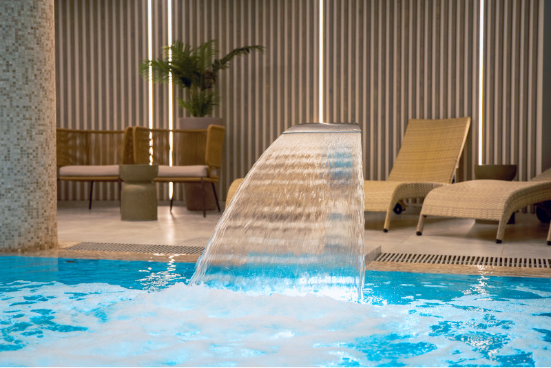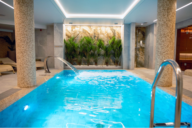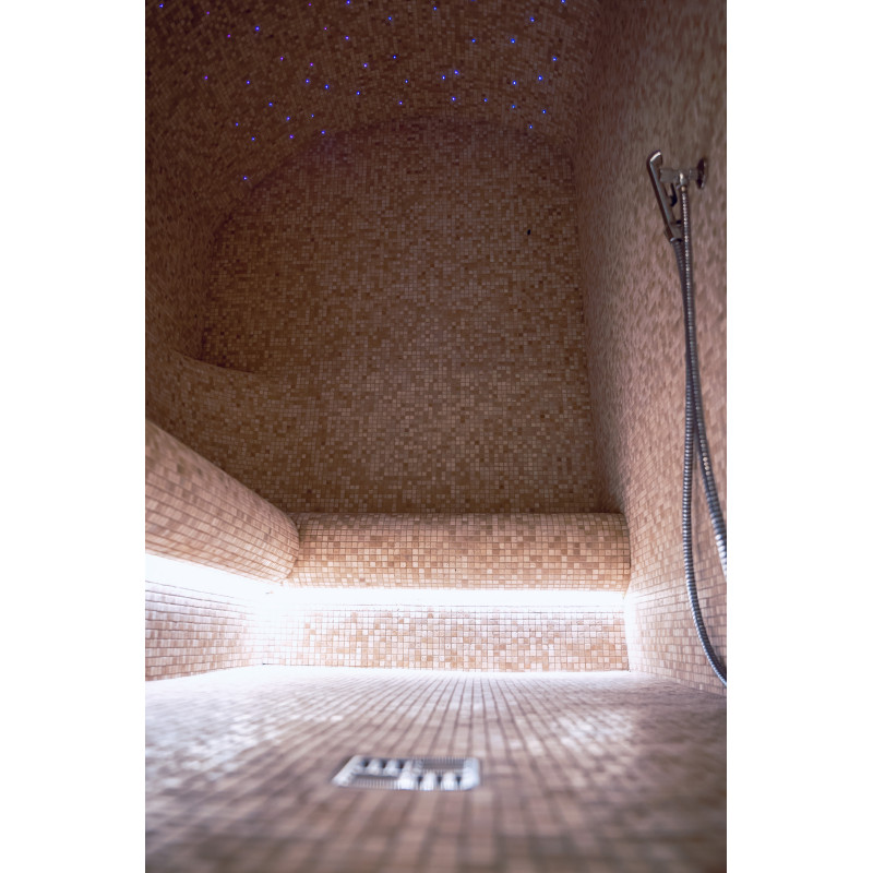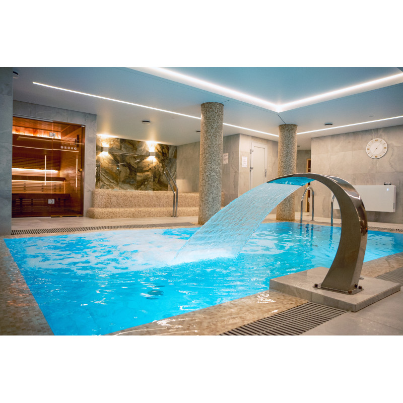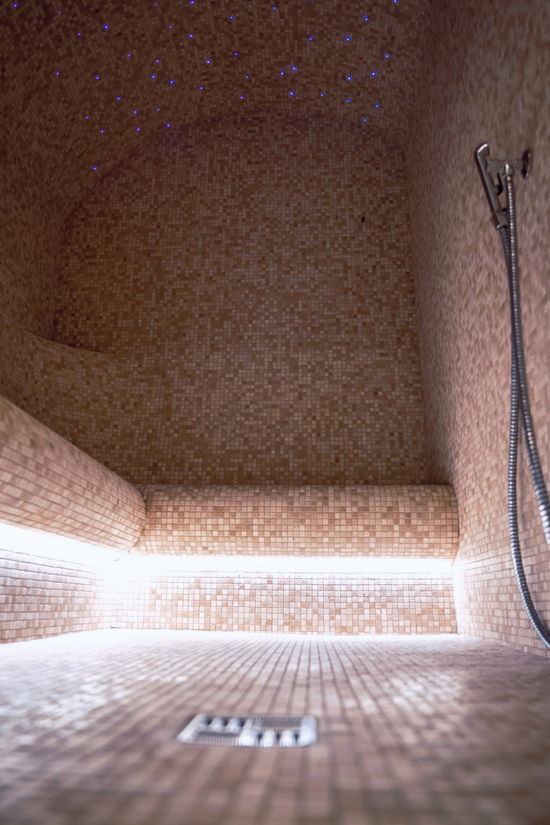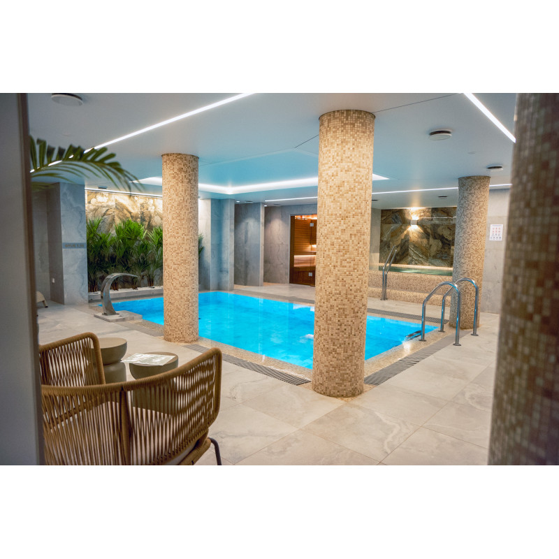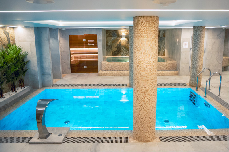 Součástí komplexu je parní lázeň, sauna, generátor ledu a bazén s masážní tryskou a vířivkou.