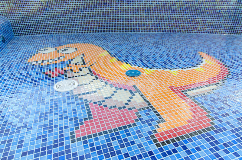 15 cm hluboký bazén je určen pro nejmenší vodní nadšence. Její dno zdobí barevná kresba mozaiky.